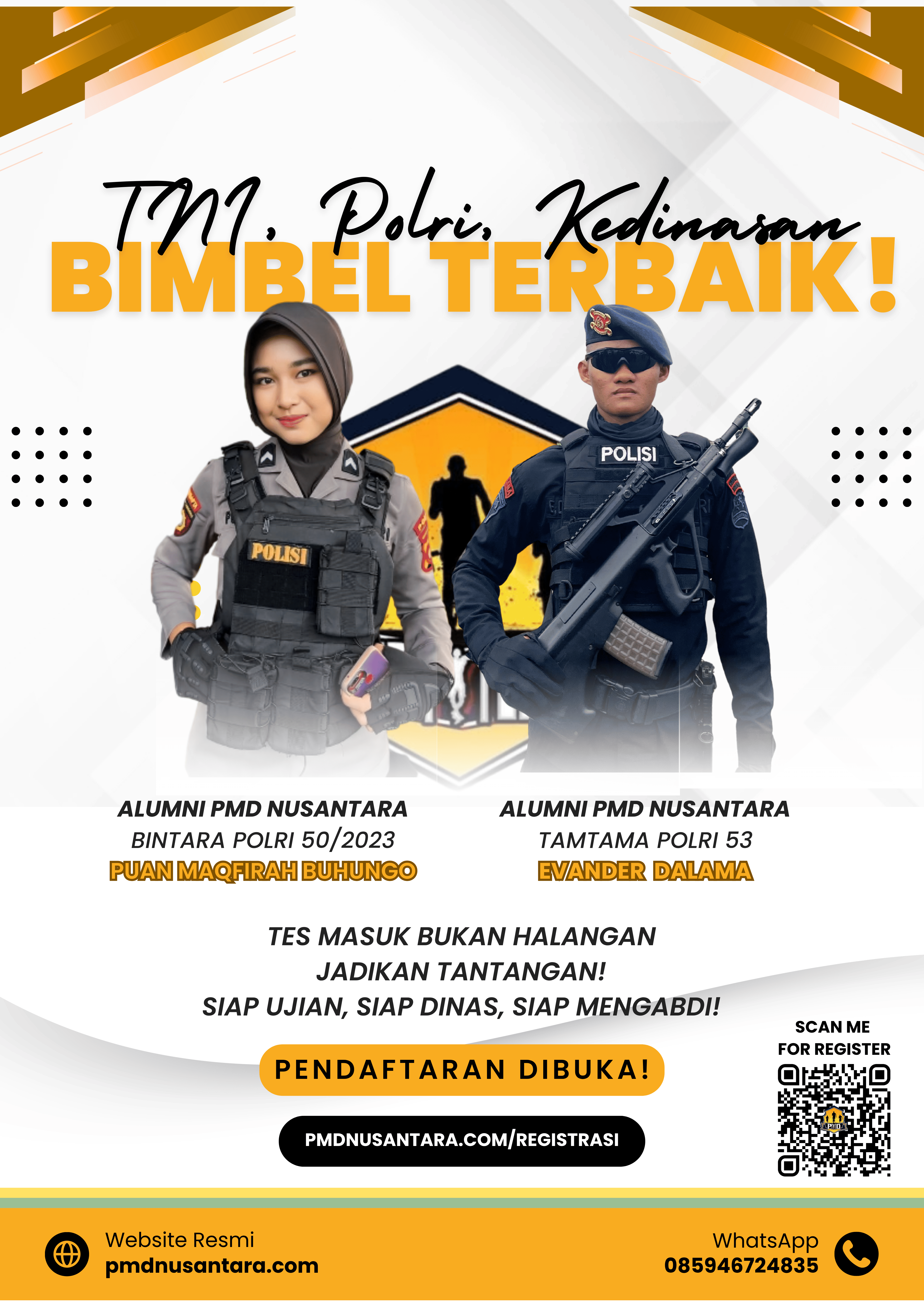 Belajar di PMD Nusantara bikin aku makin siap menghadapi seleksi TNI, POLRI dan Kedinasan. Materinya lengkap dan me